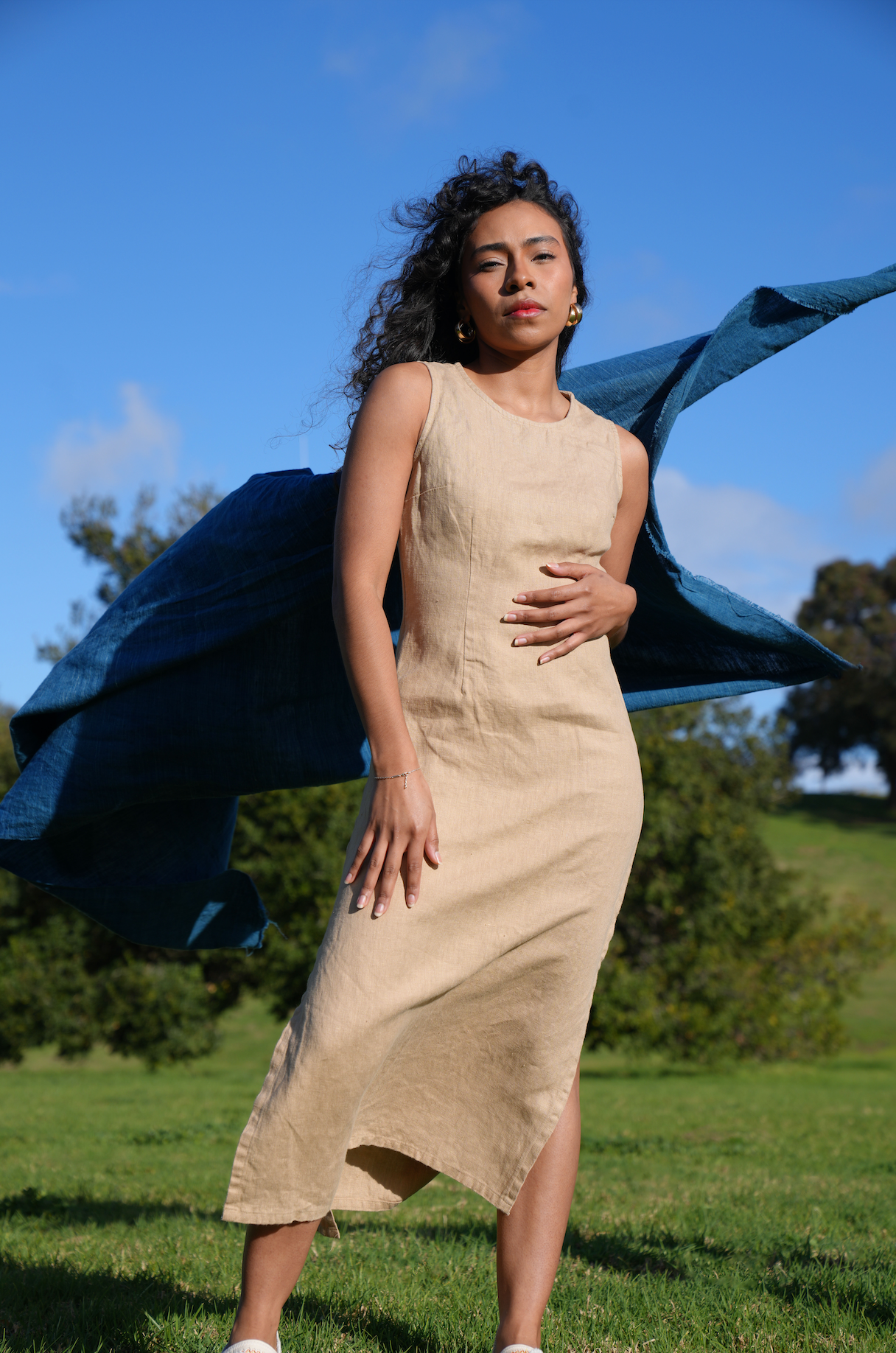This two piece design was inspired by the traditional Huipil. The Huipil was worn by indigenous women in Mexico and Central America. It is still worn in some pueblos to this day. When worn together, the garment transforms into a traditional Huipil shape. Offering movement and a fresh look, these two pieces can be worn together, layered or paired with your favorite jeans.